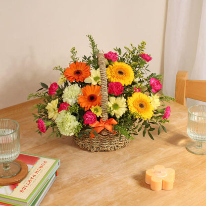 The Arcadia Basket is a colourful combination of seasonal, hand tied flowers arranged by an expert local florist. Brighten up someone's day with this classic basket design. This bouquet will be crafted by an experienced local florist near you. Purchase yours online today before 2 PM and have the flowers delivered directly to your loved ones.