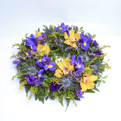 Our beautiful Orchid and Iris Wreath is a thoughtful present for funerals. As a gesture of support and love, send condolences with this wreath.