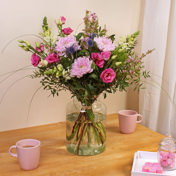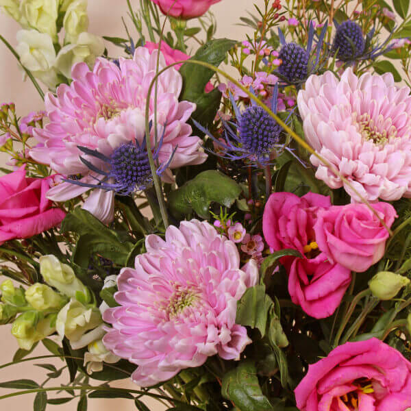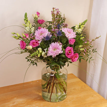 Note: Vase not included. A classic, handcrafted bouquet of Antirhinum, Chrysanthemum and Lisianthus, these beautiful flowers will fill you with awe and make you drop your jaw! Available for same day delivery, these are the ideal last minute Mother's Day gift.
